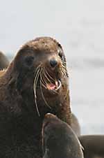 LIFE'S A BEACHIt felt as if we were an invading force as we set the bows of our black rubber zodiac boat for the shore. Tyulenii Island, a raised tableland of sandstone barely a kilometer long and less than half that wide, was our target. Winds blowing up the Sea of Okhotsk were pushing a rising swell along the unprotected eastern coast of Sakhalin and past Tyulenii, and we were setting off into it. Waves were crashing as surf onto the beach, and onshore, we could see the “army” awaiting us.