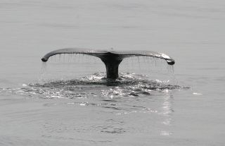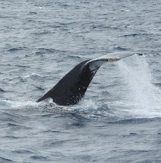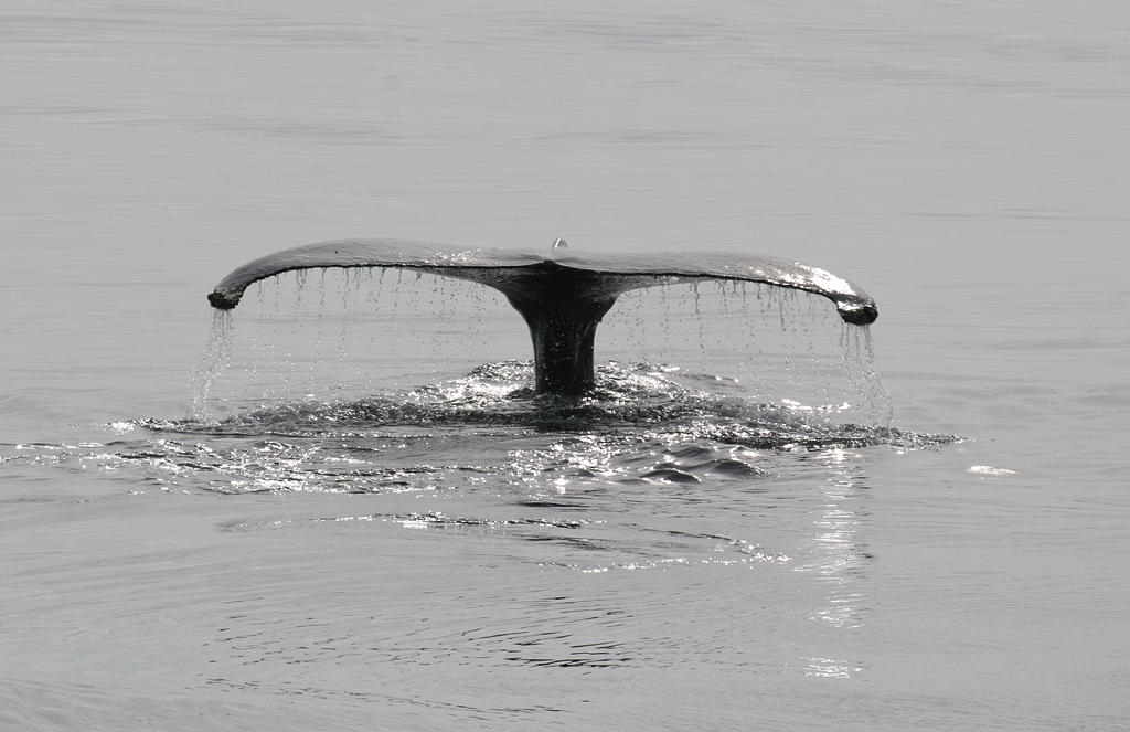 When a whale dives without showing its flukes there is a sense among the watchers of being cheated out of the last act of a play, and of missing the finale. I was out to see flukes. Of course I was hoping for more, but flukes were as high as I dared hope.
