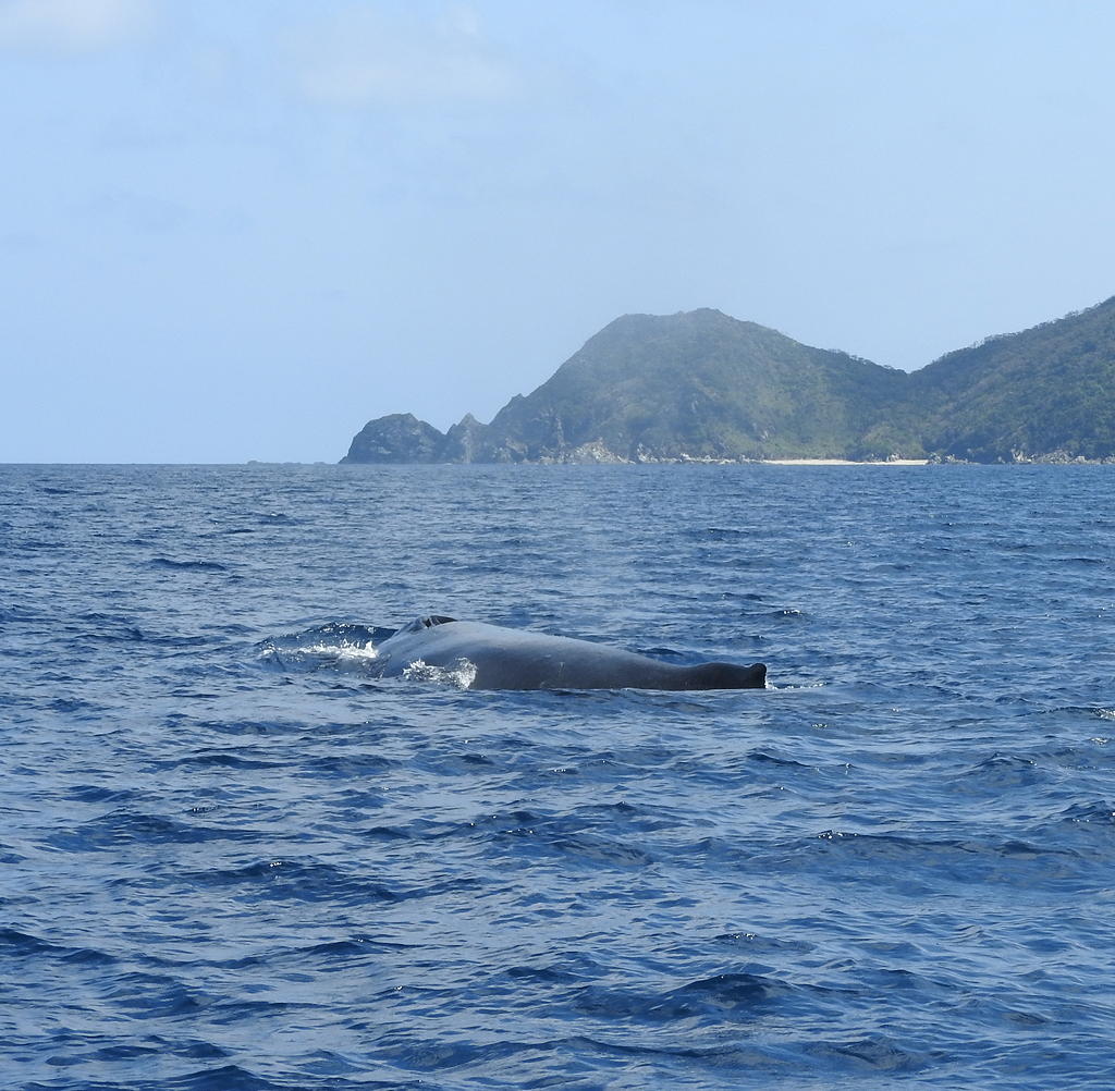 With Aka-jima to our left and Tokashiki-jima to our right we explored northwards up the almost enclosed waters and soon we spotted blows. The rest of the morning was devoted to following the two adults that we had encountered, but there were others about, with blows further north, an individual that was surprisingly close to the shore of Tokashiki-jima to the east and one that steamed past us heading south as if it was on a mission. It was difficult to keep track of them – after all being confined above the waves we missed the 95% of the whale activity that took place below, and could only imagine the action and interactions down there – but I estimated that we saw six or seven at least.