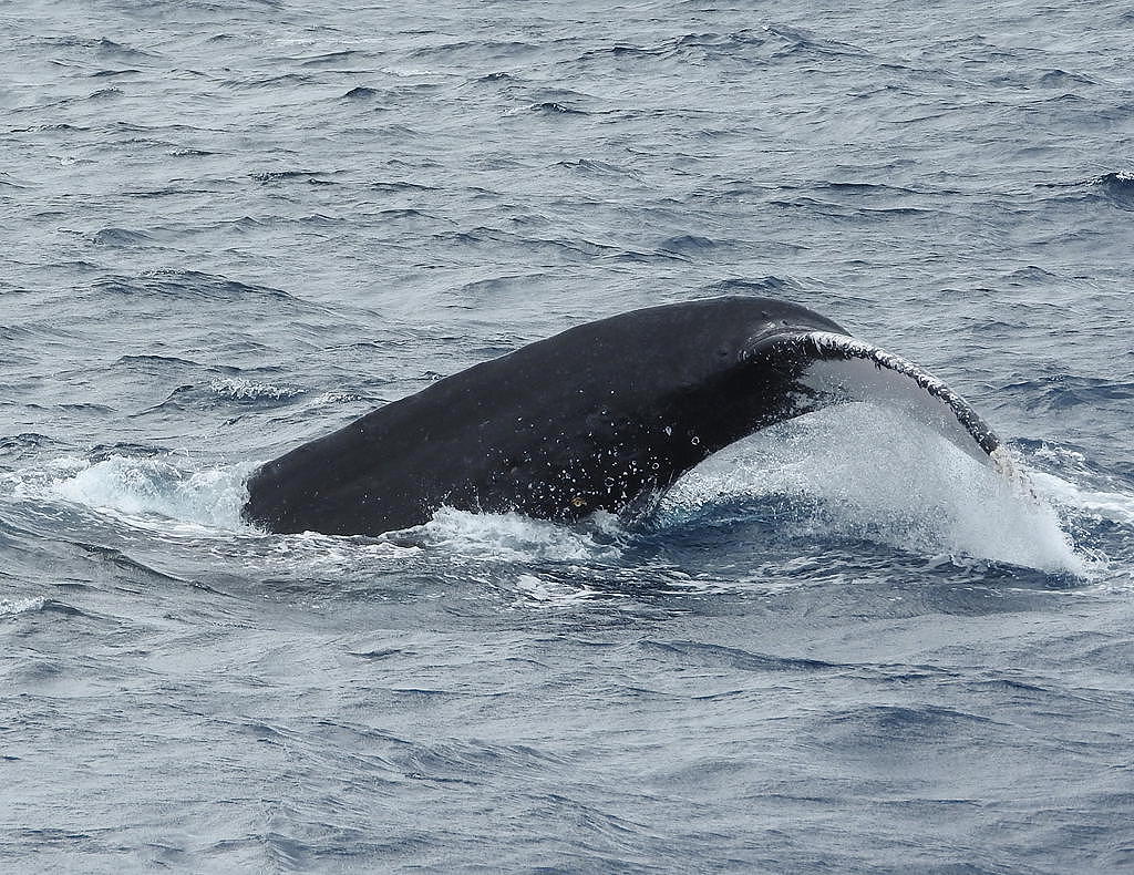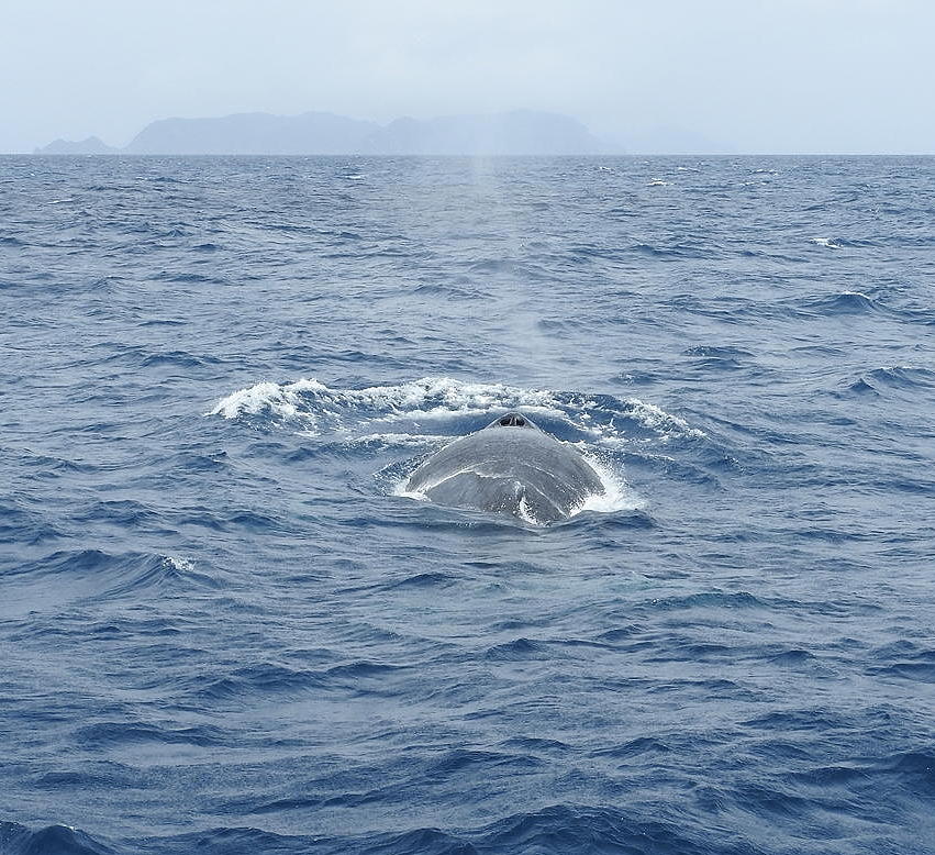 The overcast sky lent the sea a leaden, grey appearance and from this greyness emerged the great, grey back of a whale ahead of us; it rolled, showing off the nub of a dorsal fin that is a trademark feature of the Humpback Whale. Sometimes, this short, invariably stubby, fin is curved, even falcate, but sometimes nicked or marked as if by close encounter. As the whale arched its enormous back I could make out the lumpy processes of its lower spine as I admired the abruptly tapering stock of its tail. We followed cautiously, keeping behind and to the side of the whale’s motion so as always to give it the wide ocean to move towards should it tire of our presence.