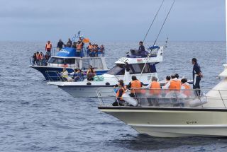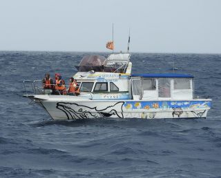 Following our brief introduction to their life cycle and their behaviour we were all assigned to the various boats going out whale-watching that morning. Ceteus was the vessel named on our tickets and soon we joined veteran captain Miyamura Yukifumi aboard his boat and set off for the sea. A new perspective was soon in place. These whales may be mega mammals, but the ocean into which we headed in search of them was a mighty big place; suddenly our search seemed to be for a drop in the ocean.