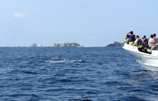 The Kerama Islands and the Ogasawara Islands together can boast of being the calving grounds of one of the most dramatically active of all cetaceans – the Humpback Whale. While both archipelagos offer the relaxed atmosphere of a subtropical lifestyle, the Kerama Islands alone have the added flexibility of ready access. From Naha, the capital of Okinawa, there is a fast ferry, Queen Zamami, taking no more than an hour, and a regular service on Ferry Zamami taking 120 minutes, whereas the Ogasawara Islands accessible from Tokyo are for those on a week-long retreat by ship, as the ferry alone takes more than twenty-four hours each way.