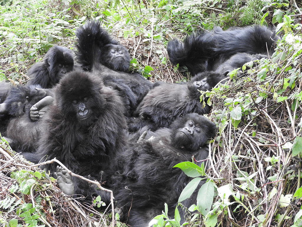 Had I been able to visit the Virungas back in the 1970s or 1980s I might have spent all day, as Ian had, tracking and following a family in the company of researchers, or removing snares set by poachers, but today gorilla trekking permits last for exactly one hour. Before visiting that seems such an incredibly short time given the lengths to which one must travel to reach their habitat, but in the interests of their safety, their security, and their natural behaviour they receive just one hour-long visit from their human relatives each day. In the company of a gorilla family time warps and an hour flashes by in an instant filled with images of them sitting together, of individuals giving friendly calls, or alarms, or bickering, or munching on vegetation – or breaking wind!