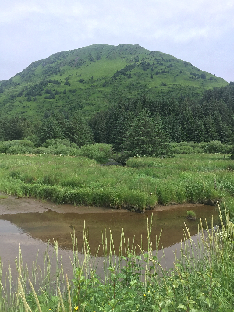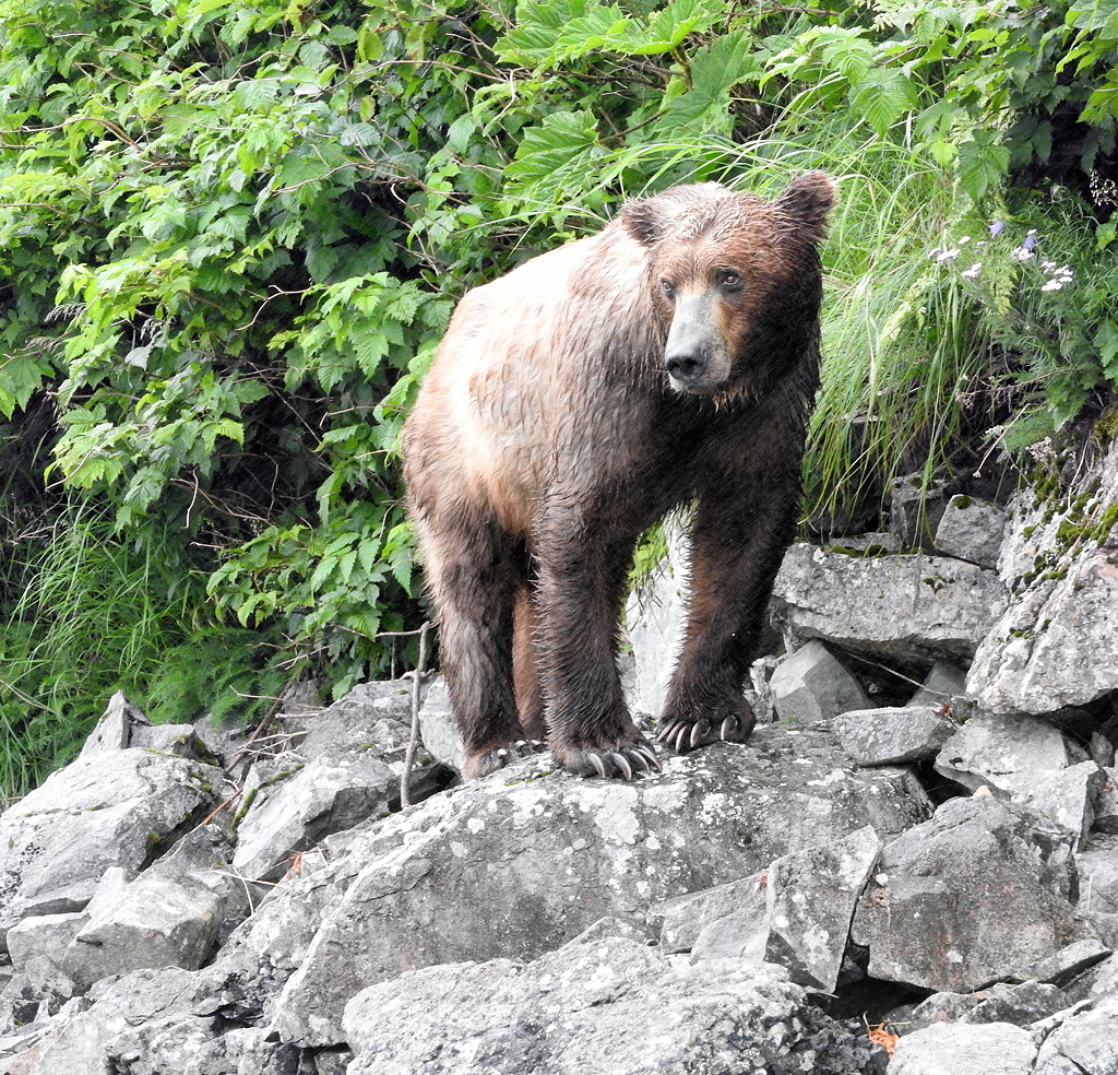 Kodiak seems a sleepy town place. This port was initially settled by Russian fur traders in 1784, and established in 1792, by Alexander Baranof, as the first capital of Russia’s North American colonies. Today, Kodiak boasts various attractions such as Erskine House, a National Historic Landmark built in 1809, first used as a fur warehouse and now housing the Kodiak Baranof Museum (dedicated to the man who administered Alaska on behalf of Russia), and also the Alutiiq Museum with its collection of art and cultural objects detailing the lives of the native Aleut, who lived here millennia before the Europeans arrived. There is a Russian Orthodox Church (Holy Resurrection) with prominent blue onion domes dating back to 1794, and a centre for fisheries research with touch tanks of local marine life. There are mysterious moss-draped forests at Fort Abercrombie and rushing streams at the Buskin River, there are wildflowers and wild birds, and in most respects this lovely island is impressive, with one “but” (though it is in fact one mega-but!). Where, except in an active war zone, would you find a sign that warns of the dangers of – stray bullets!!! I feel safer around bears any day, than around humans with guns.