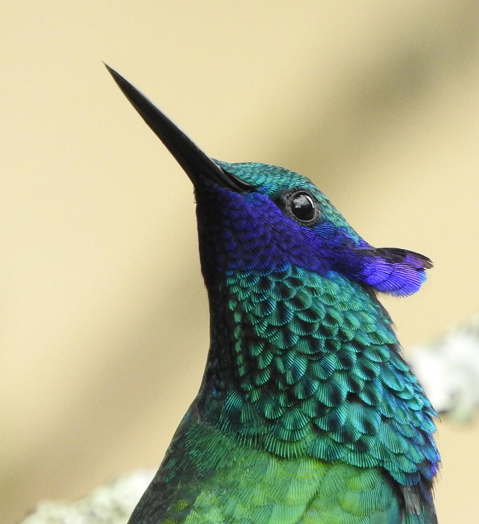 Biologically and taxonomically the hummingbirds differ in intriguing ways one from another, yet at a very much simpler level, as living jewels, as creatures of extraordinary beauty, and phenomenal activity, they are overwhelmingly thrilling to watch. Their feathers appear as if beaten from precious metals, and their names stretch the imagination hinting at the desire of the ornithologists naming them to find ever more fanciful appellations. Those designations range from ‘hermit’, ‘sylph’ and ‘trainbearer’ to ‘thornbill’, ‘metaltail’, ‘saphirewing’, ‘plumeleteer’, ‘violetear’, ‘jacobin’, ‘sabrewing’ and even ‘woodstar’. No fantasy author naming fairies could do better.