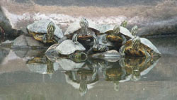 In the garden at Ryoanji (The Temple of the Peaceful Dragon) in Kyoto, I found a photogenic group of Reeve’s pond turtles, and at Niijo Castle there I came across Chinese soft-shelled turtles, while a Japanese five-lined skink posed for me in the city’s Tenryuji Sogenchi garden.
